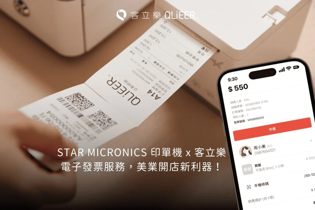 客立樂結合日本品牌 STAR MICRONICS ,整合美業電子及實體發票服務。客立樂最美預約App 支援手機印電子發票及小白單、多部手機裝置連接,效率倍增,STAR MICRONICS 印單機質感外型小巧耐用,強強聯手讓美業主理人開店經營更省力。