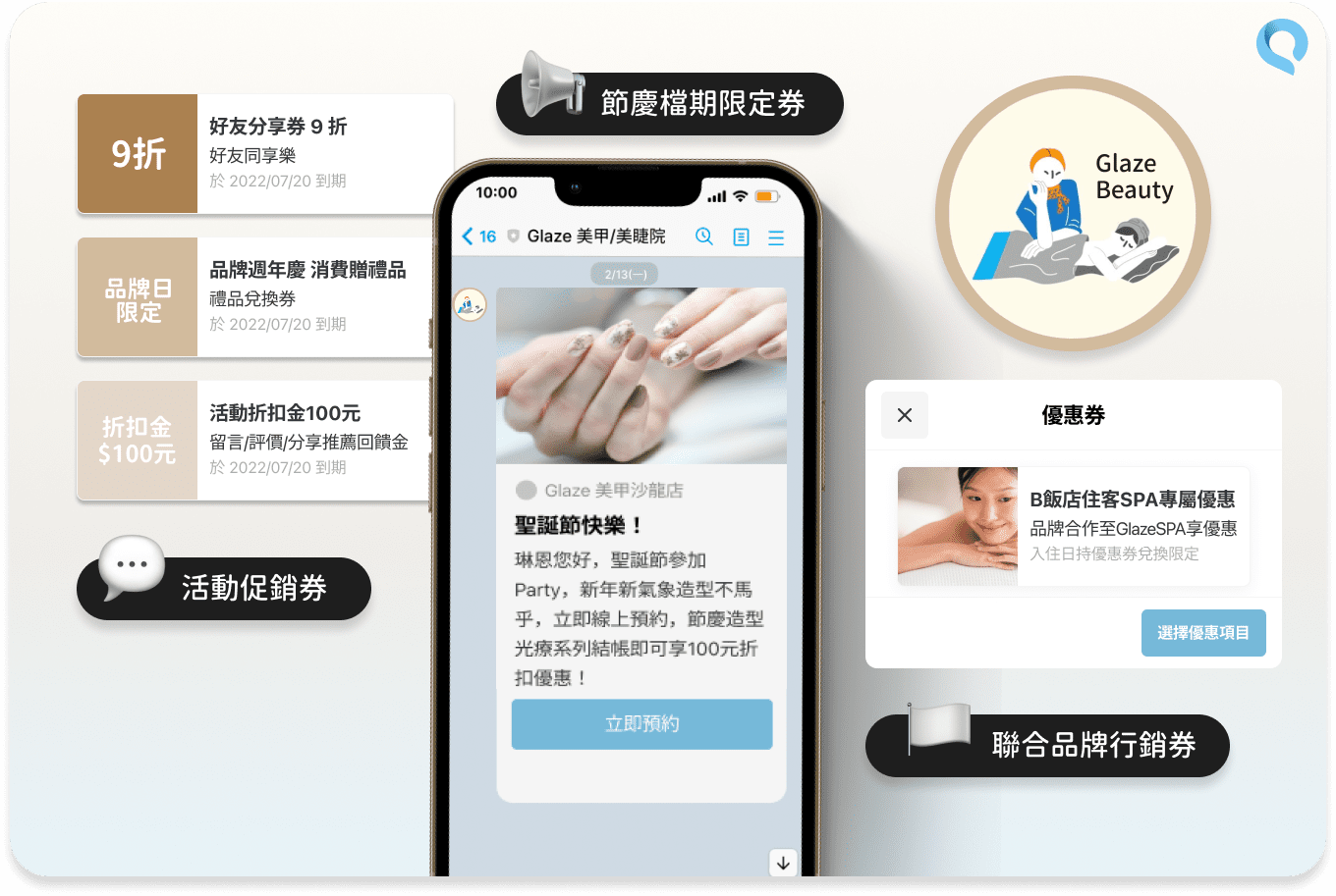 利用節日和特殊活動發送優惠券,例如情人節、婦女節、母親節、百貨週年慶、連休假期、雙十一、萬聖節、聖誕節、春節前夕等美業重要節慶,包套出節慶限定活動,並發送優惠券誘餌吸引消費者前來光顧。隨著時代的變化,消費者對於節日和特殊活動的關注度,慶祝參與度提升對於外觀造型需求逐漸提高,因此,美業店家可以抓住時事、趨勢、節慶,研發更多有創意的活動促銷券和節日檔期限定券,讓消費者感受到店家的用心和關懷,從而增加客戶的忠誠度和經營業績。