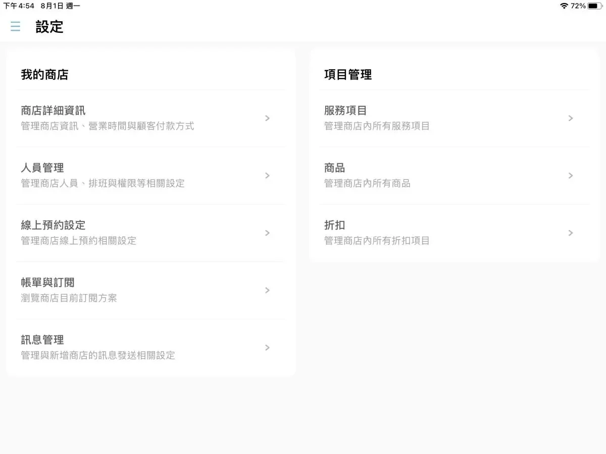 右側「項目管理」則是可以修改服務項目、商品項目與折扣等等。