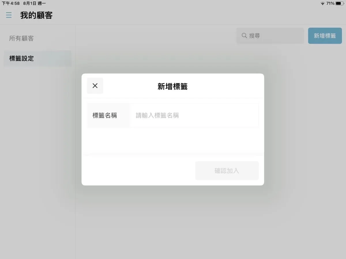 客戶分類標籤也可以從後台設定,例如有顧客都固定做某項服務,就可以在這邊設定標籤。
