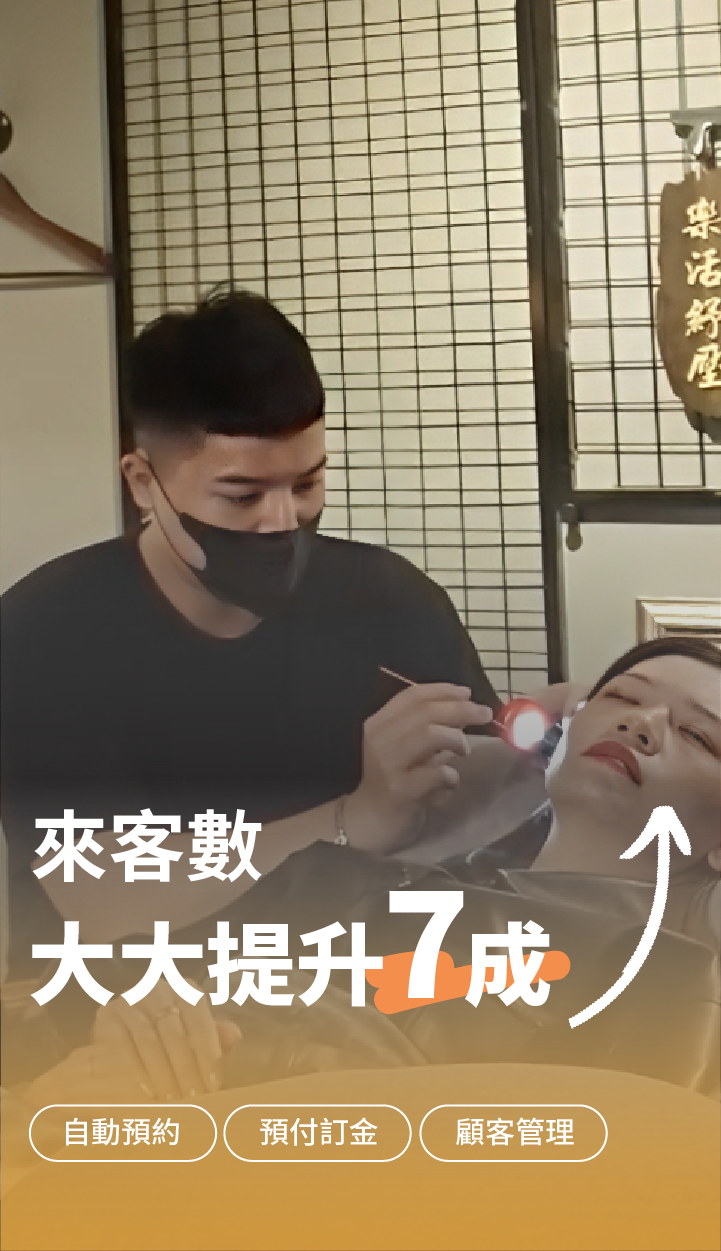 線上預約+定金,顧客確保他的時間被保留並尊重每次預約,讓來客數提升7成